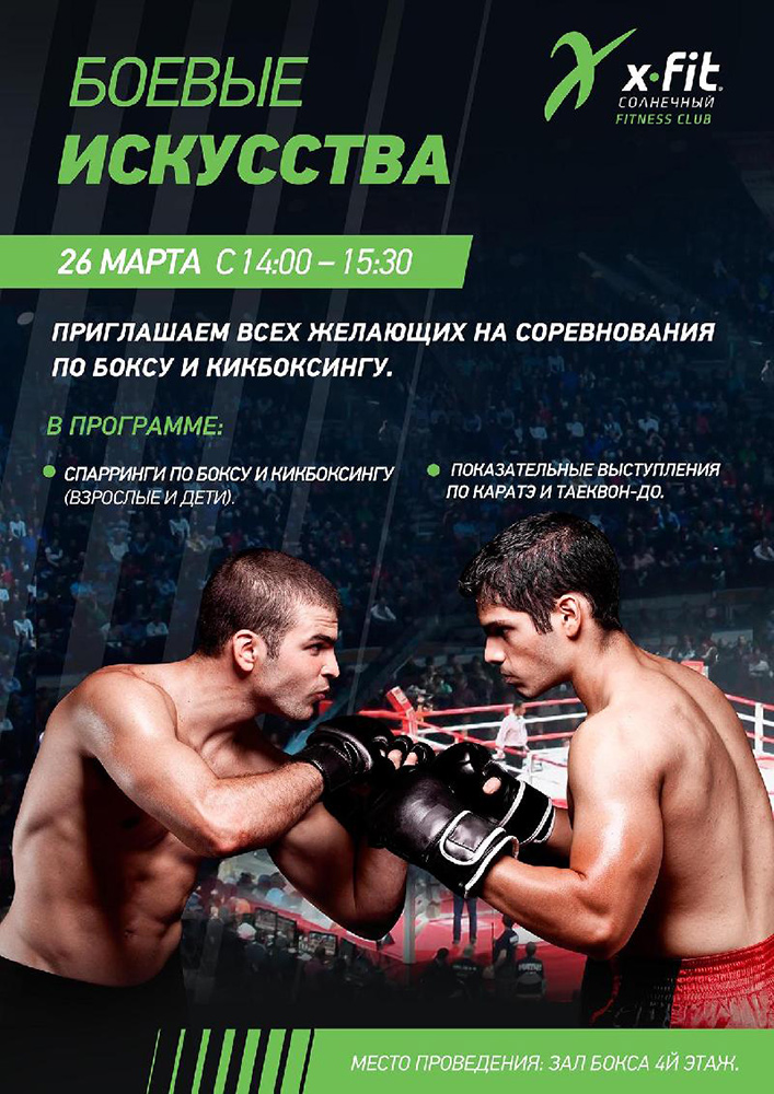 26 марта с 14:00 до 15:30 приглашаем всех желающих на соревнования по боксу и кикбоксингу.