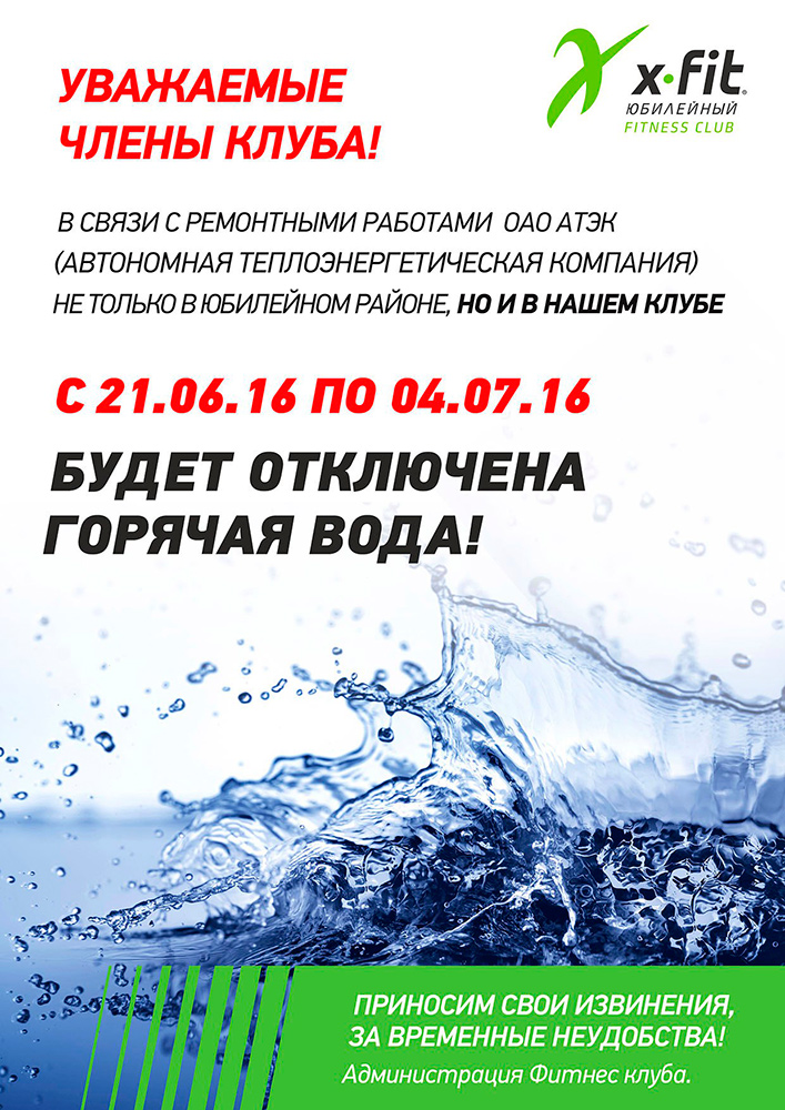 Отключение горячей воды в X-Fit Юбилейный!